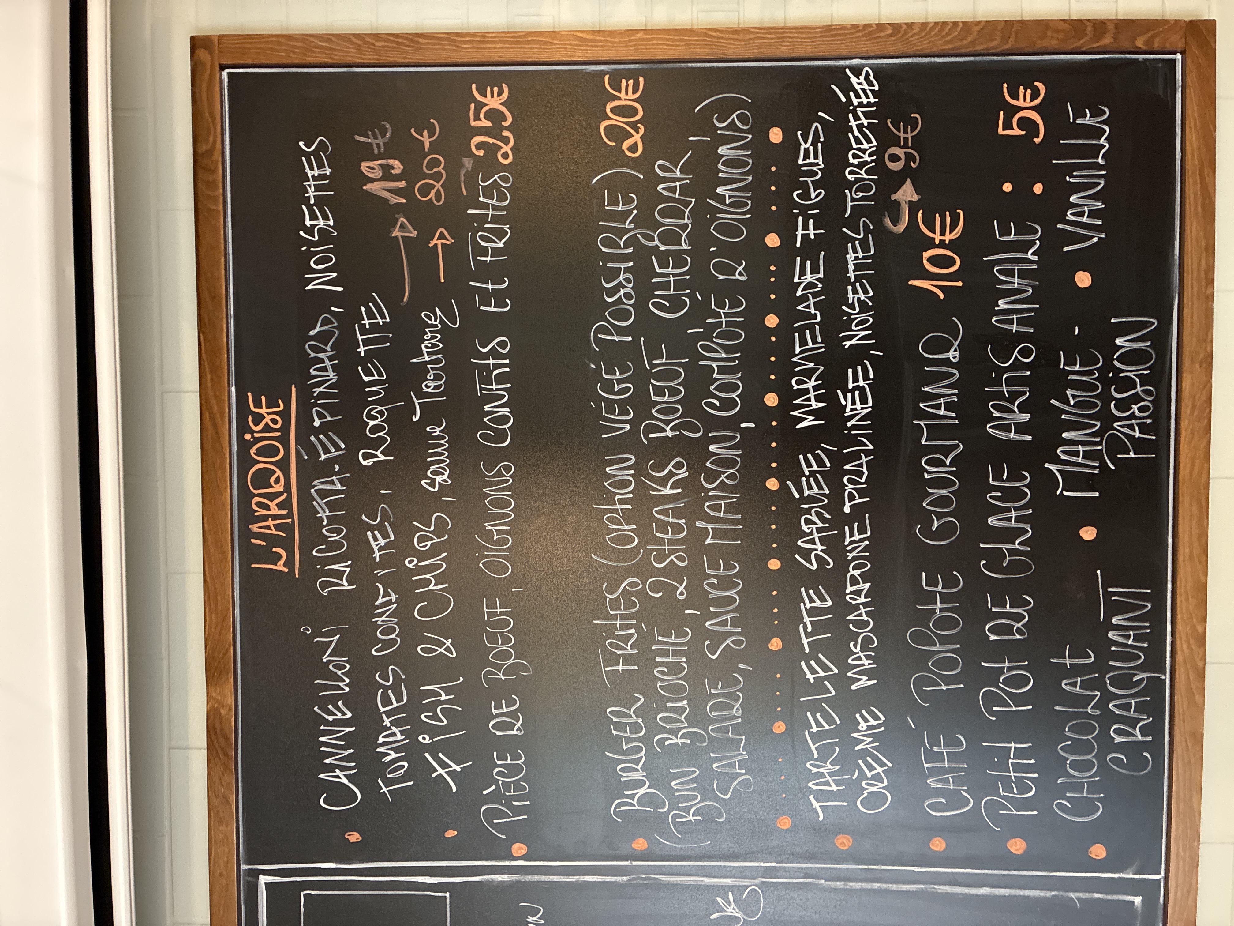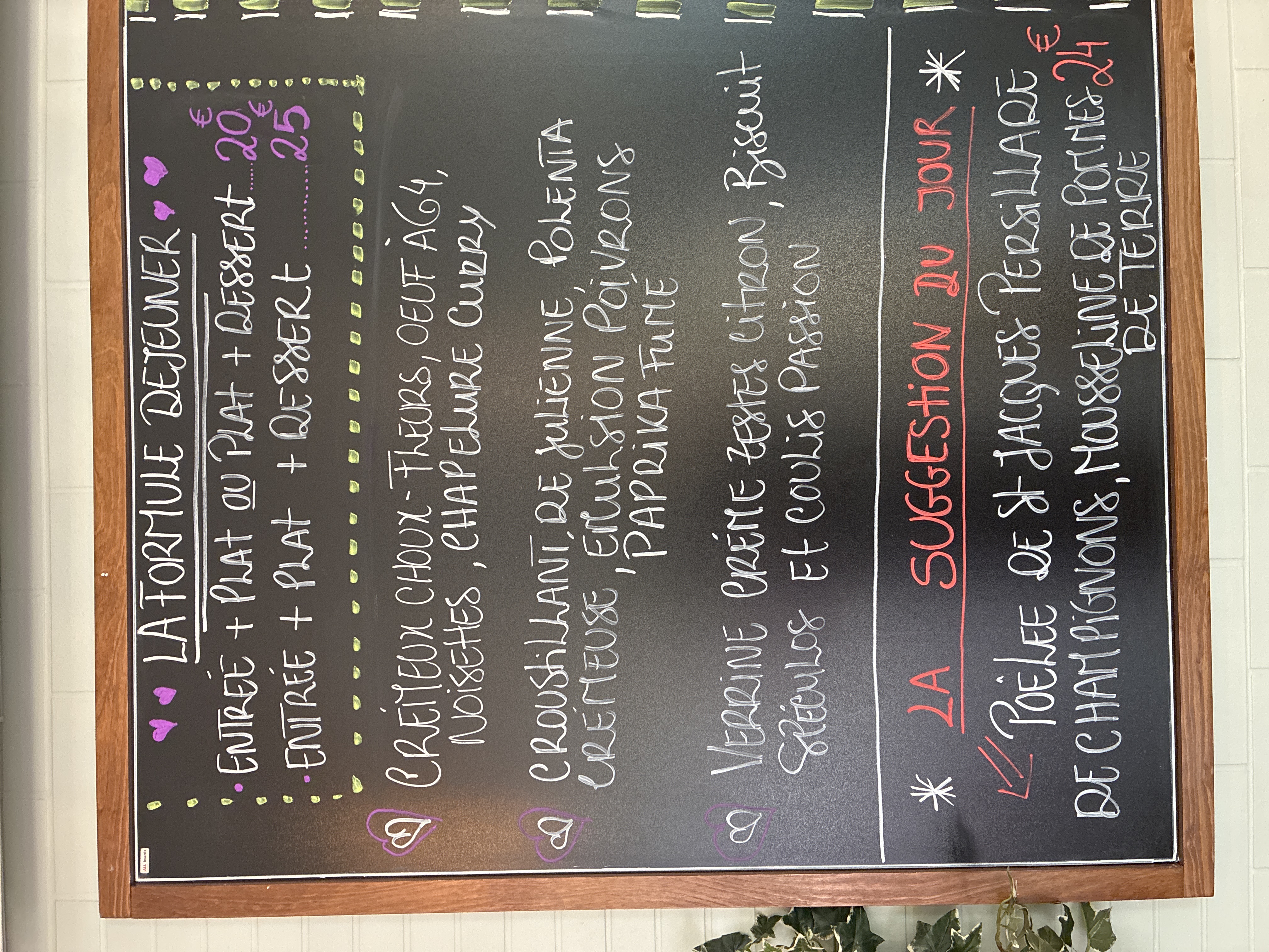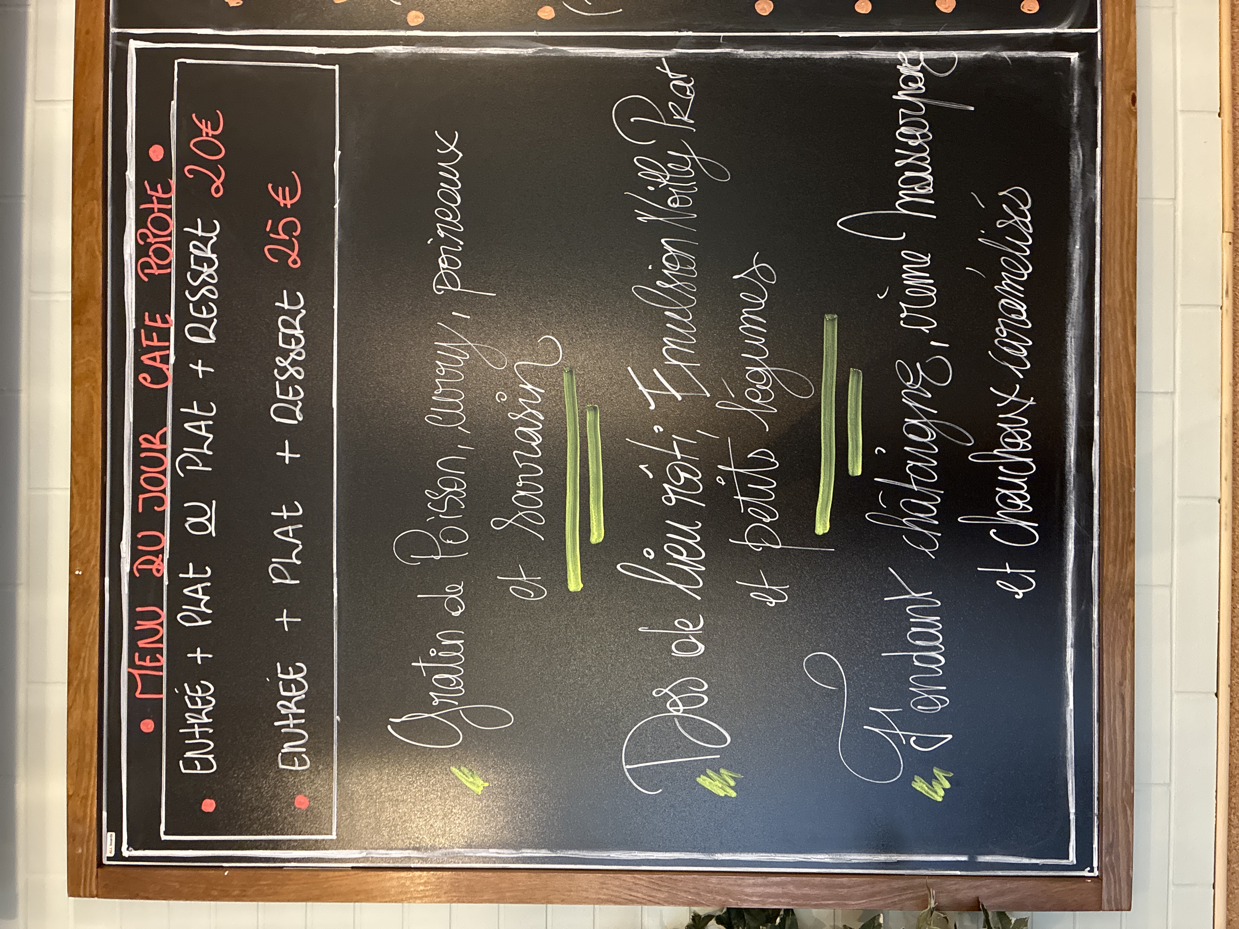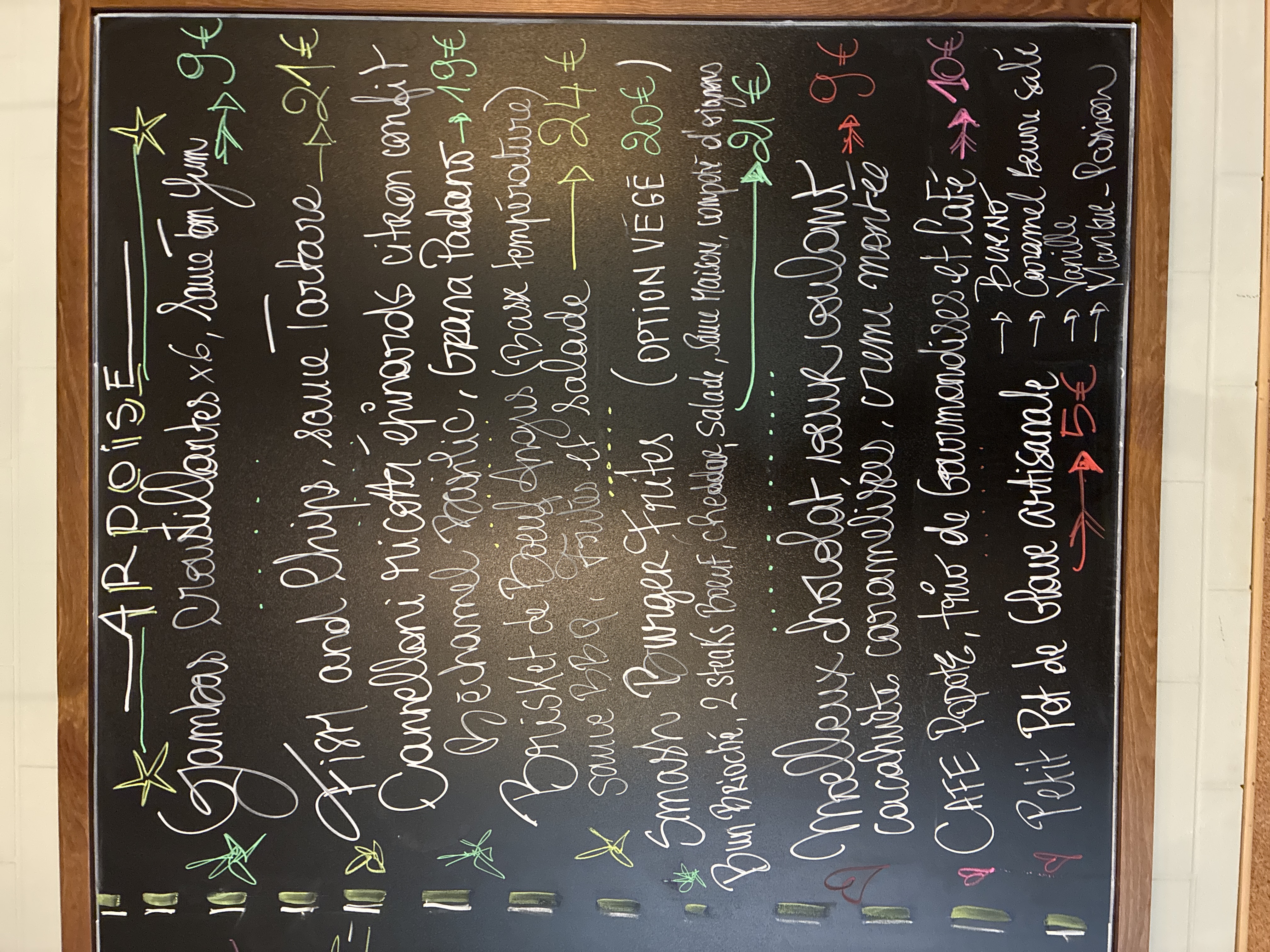 Nous proposons une ardoise courte qui change régulierement avec les produits du moment, en fonction de la pêche et des légumes de saison. Nous favorisons le local